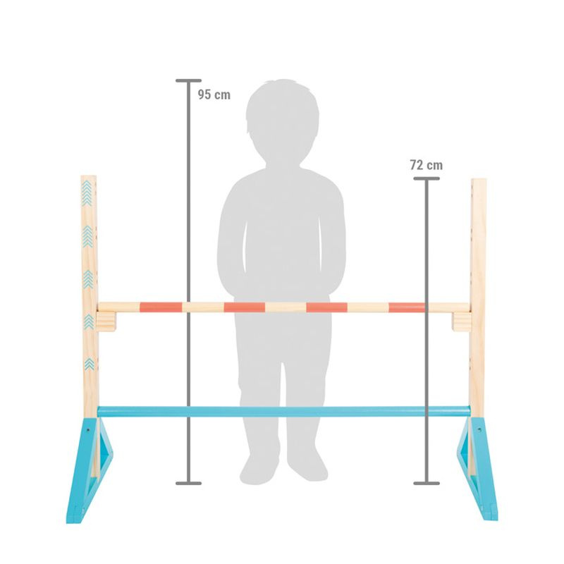 Płotek przeszkoda "Active" Small Foot ma oznaczenia wysokości, które mogą zrozumieć nawet młodsze dzieci (regulacja wysokości od 20 do 70 cm).