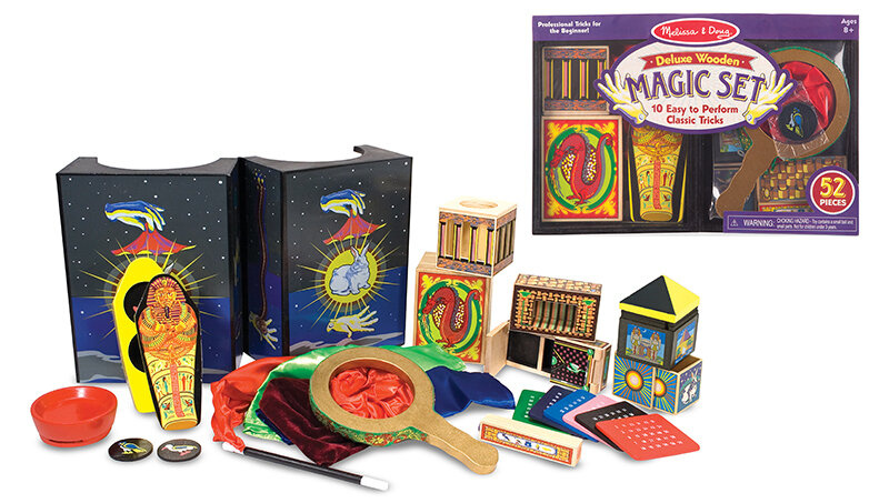 Zestaw małego magika Deluxe Melissa and Doug zawiera 10 klasycznych sztuczek, które mogą być realizowane przez 8 letniego lub starszego czarodzieja. Ten powstały z wysokiej jakości litego drewna zestaw, sprzyja wielopłaszczyznowemu rozwojowi dzieci. To świetna opcja na aktywną zabawę bez monitora.