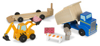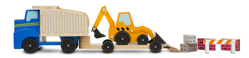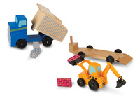 Zestaw drewnianych pojazdów budowlanych z akcesoriami Classic Toy Melissa and Doug zawiera 8 elementów, które doskonale się uzupełniają tworząc dla dziecka doskonałe warunki do kreatywnej zabawy. Maluch znajdzie w opakowaniu wywrotkę, koparko-ładowarkę, przyczepę, elementy konstrukcyjne a także drewnianą barierkę. Ten zestaw pojazdów budowlanych sprawdzi się doskonale w rękach każdego dziecka od 3 roku życia.