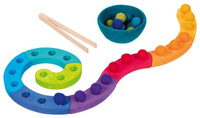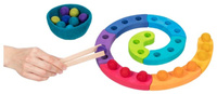 Gra do nauki kolorów i Spirala Goki składa się z 29 elementów. Dziecko może ją wykorzystać na wiele sposób m.in. jako naukę kolorów i liczenia. Do jej stworzenia użyto drewna klonowego i bukowego najwyższej jakości. Podczas zabawy dzieci poprawiają zdolność do koncentracji oraz trenują koordynację ręka-oko.