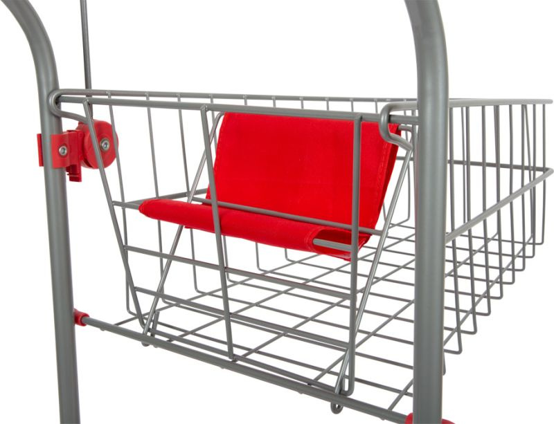 Wózek sklepowy Small Foot posiada metalową, składaną ramę.