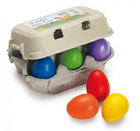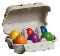 Zestaw pół tuzina kolorowych jajek w wytłaczance sprawdzi się podczas zabawy w sklep, gotowanie lub pieczenie. Drewniane jajka marki Erzi wykorzystują wysokiej jakości i miłe w dotyku drewno bukowe. Każde jajko jest innego koloru, co jest zasługą wykorzystania nietoksycznych farbek. 6 jaj umieszczonych zostało w tekturowej wytłaczance z etykietą z kodem kreskowym. Zabawka została wyprodukowana w Niemczech oraz posiada certyfikaty bezpieczeństwa CE oraz ASTM.