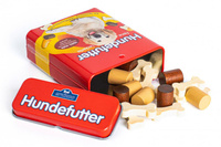 Drewniane smakołyki dla psa w puszce marki Erzi wzbogacą zabawę w sklep lub tresurę zwierzaka. 16 wykonanych z drewna buku przysmaków ma różne kształty oraz realistyczny wygląd. Opakowanie stanowi praktyczna puszka ze zdejmowaną pokrywką. Zabawka została wyprodukowana w Niemczech oraz posiada certyfikaty bezpieczeństwa CE oraz ASTM.