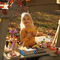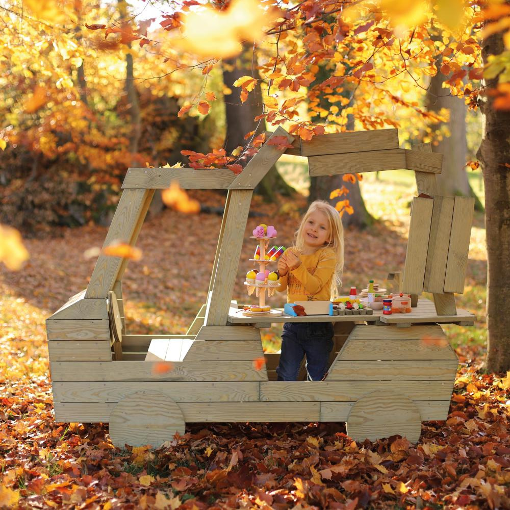Prowadzenie Food Truck to nie lada wyzwanie. Trzeba być i kucharzem, i kelnerem, i sprzedawcą. Drewniany Food Truck Erzi Outdoor umożliwia dzieciom emocjonującą zabawę. Ten spory pojazd wykonany został z zaimpregnowanego drewna sosny, któremu niestraszne opady i wilgoć.
