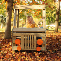 Food Truck posiada przestronne wnętrze z wydzieloną kabiną kierowcy z kierownicą oraz częścią kuchenno-sprzedażową. W pojeździe zmieści się kilkoro dzieci, a sporej wielkości konstrukcja można stanąć w ogrodzie i zachęcać maluchy do spędzania czasu na zewnątrz w pogodne dni.