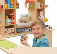 Zawartość zestawu: 1 regał sklepowy, 1 lada sklepowa, 1 płyta przyłączeniowa, 6 skrzynek