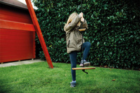 Huśtawka ma kształt dysku. Siedzisko posiada antypoślizgowe wypustki.