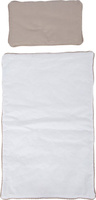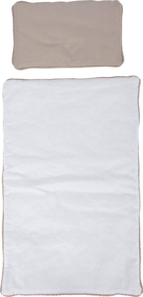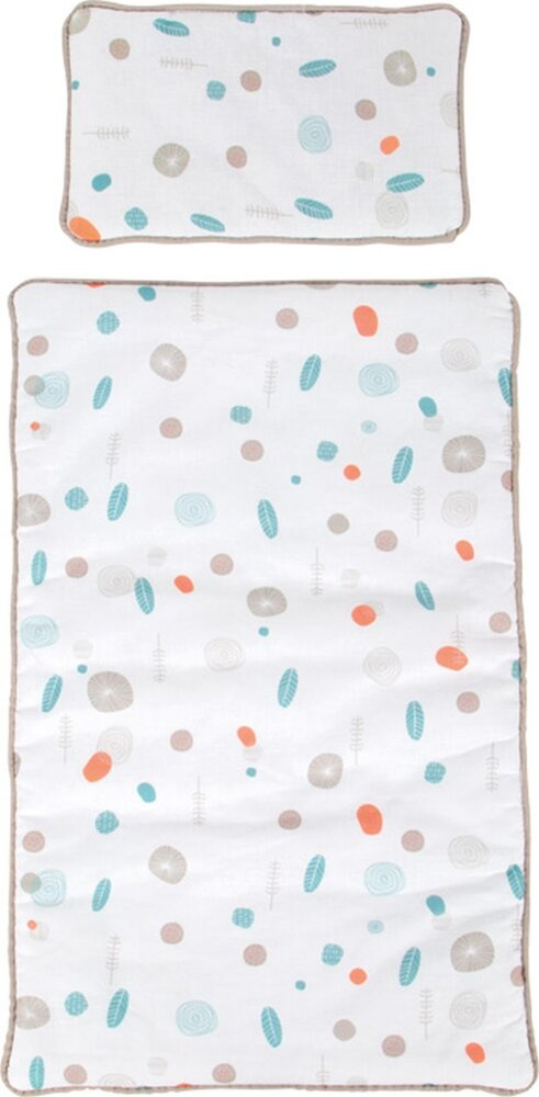 W komplecie z drewnianym łóżeczkiem dla lalki Little Button Small Foot przewidziano pościel w kolorowe groszki tj. koc oraz poduszkę.