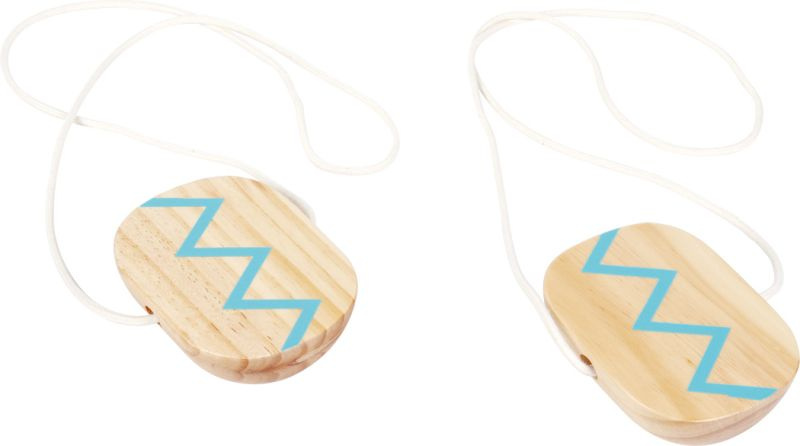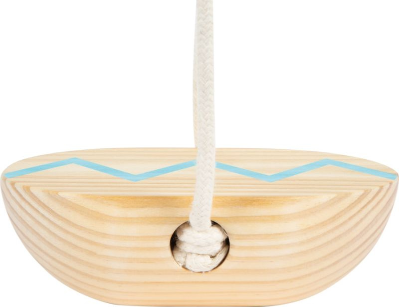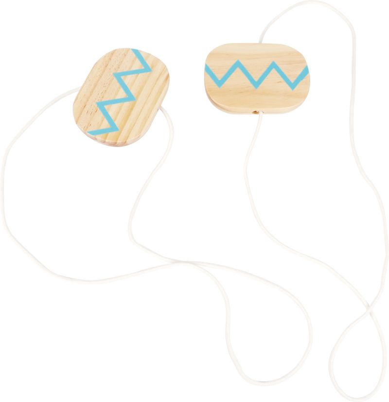 Drewniane szczudła sensoryczne Small Foot wyposażono w materiałowe linki z regulacją długości.