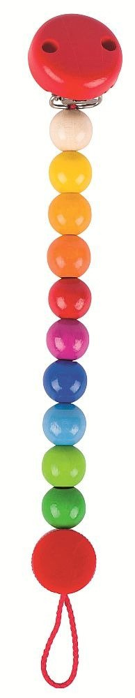 Łańcuszek przypinany na dziecięce ubranka tak, aby smoczek nie został zgubiony. Kolorowa zabawka drewniana wyposażona w praktyczny klips z łatwością rozweseli maluchy, dając im mnóstwo radości. Smoczek jest mocowany za pomocą małej pętelki.