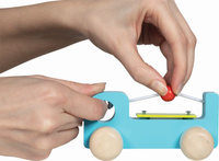 Autka dla dzieci Goki połączono z prostymi instrumentami muzycznymi takimi jak: miniksylofon, 2 grzechotki, guiro.