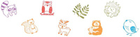W pakiecie przewidziano 8 pieczątek z motywem roślin i zwierzątek z lasu. Wśród wzorów takie postaci jak np.: sowa, sarna, jeż czy szop.