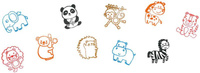 W pakiecie przewidziano 10 pieczątek z motywem zwierzątek z dzikich zakątków świata. Wśród wzorów takie postaci jak np.: koala, hipopotam, panda, zebra, żyrafa.