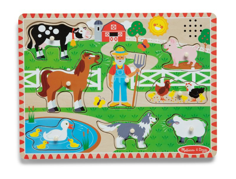 Interaktywna, drewniana układanka odtwarza fragmenty klasycznej piosenki "Old MacDonald Had a Farm" po dopasowaniu elementów do planszy. Idealna do rozwijania zdolności manualnych i słuchowych, zabawka łączy naukę z radosną zabawą. Wykonana z trwałych materiałów, zapewnia bezpieczną i długotrwałą zabawę dla dzieci w wieku 2-5 lat.