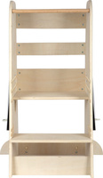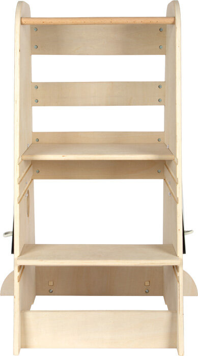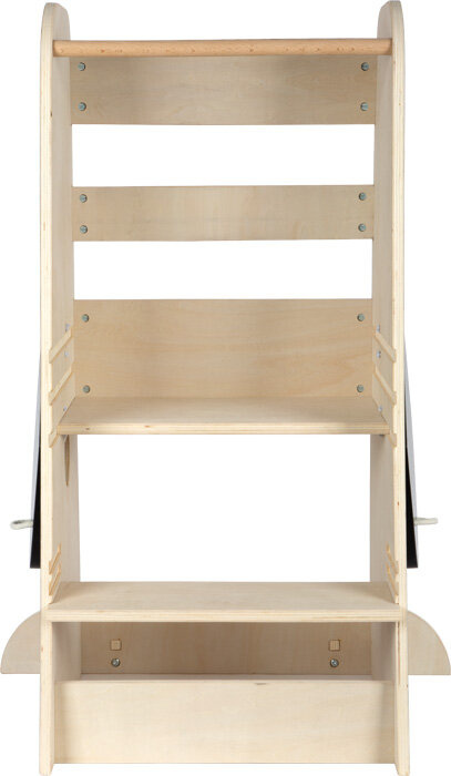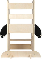 Konstrukcja wieży jest dostosowana do potrzeb rosnących dzieci. Regulowany stopień i wysokość platformy umożliwiają nawet kilkuletnie użytkowanie. Barierka chroni maluchy przed upadkiem, zapewniając im pełne bezpieczeństwo. Drewniane skrzydełka Pingwinka to nie tylko uroczy detal, ale także funkcjonalny element, w którym można przechować przybory kuchenne.