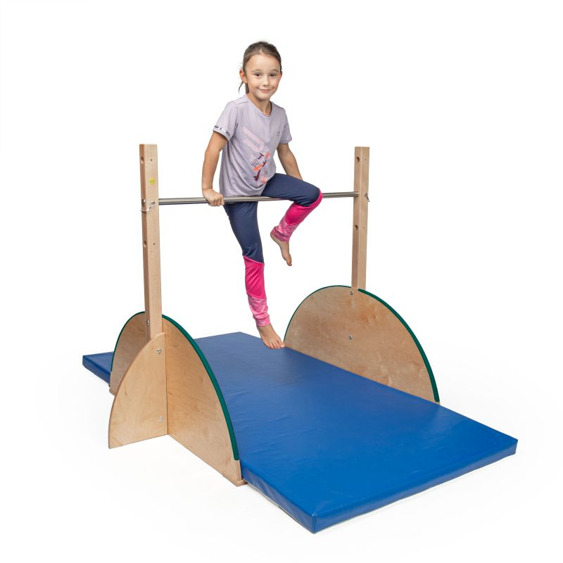 Drążek ma 3 poziomy regulacji, dzięki czemu można dostosować go do wzrostu i możliwości dziecka. To idealne narzędzie do treningu równowagi, siły i gibkości. Solidna drewniana konstrukcja zapewnia trwałość oraz stabilność. Maksymalna nośność wynosi 60 kg.