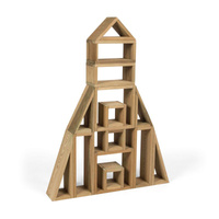 Zestaw zawiera 21 dużych drewnianych klocków oraz 3 kulki o średnicy 5 cm, które idealnie pasują do torów i tuneli. Wszystkie elementy wykonane są z wysokiej jakości drewna odpornego na warunki atmosferyczne, co sprawia, że nadają się zarówno do zabawy w domu, jak i na zewnątrz.