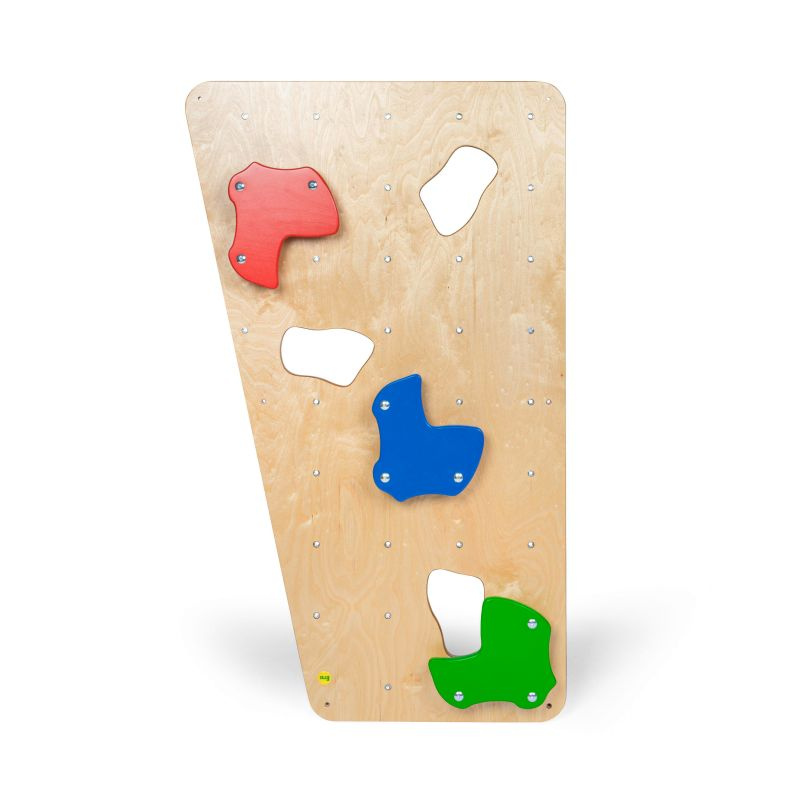 Ścianka wspinaczkowa Junior Erzi wyposażona jest w wbudowane uchwyty oraz 3 dodatkowe chwyty wspinaczkowe, które można dowolnie rozmieścić na perforowanej powierzchni. Modułowy system pozwala na łączenie kilku paneli, tworząc jeszcze większą przestrzeń do wspinaczki. Dzięki solidnej konstrukcji wytrzymuje obciążenie do 70 kg, zapewniając bezpieczeństwo i trwałość użytkowania.