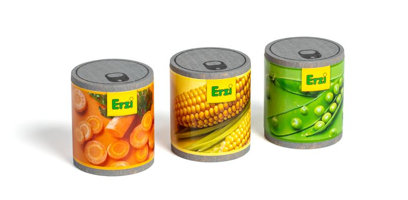 Kolorowe puszki pełne warzyw są wręcz idealne do dziecięcej zabawy. Mieszanka warzyw w puszkach Erzi to zestaw 3 drewnianych puszek z nadrukami przedstawiającymi groszek, marchewkę i kukurydzę. Wykonane z wysokiej jakości drewna bukowego, malowane i lakierowane, zachwycają trwałością i estetyką.