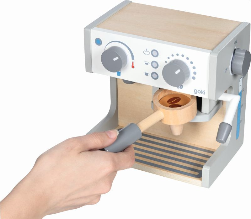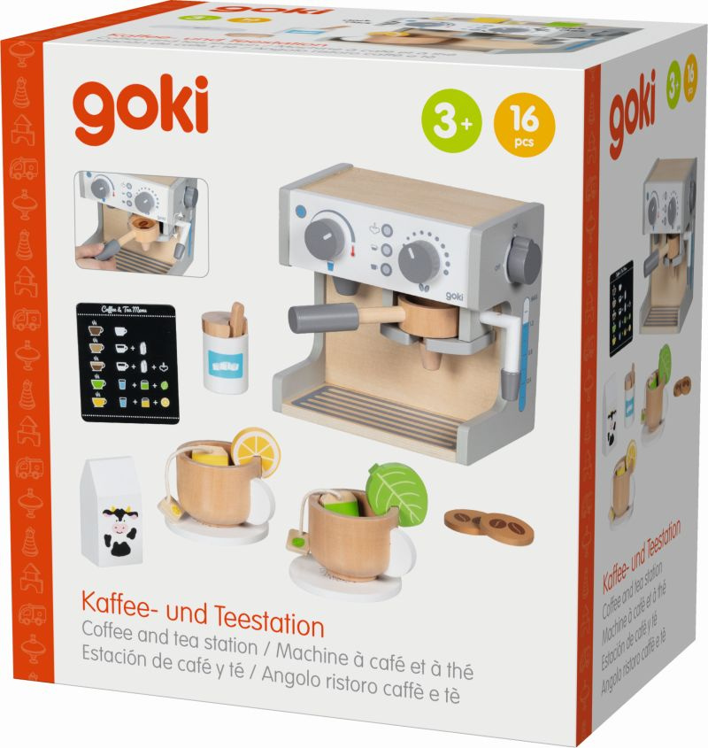 Z tym pięknym drewnianym ekspresem każdy mały mistrz kawy i herbaty poczuje się jak prawdziwy barista. Realistyczny design, ruchome pokrętła i mnóstwo akcesoriów sprawiają, że zabawa jest jeszcze bardziej wciągająca. Można zaparzyć filiżankę aromatycznej kawy, dodać mleko lub podać pyszną herbatę z cytryną i miętą.