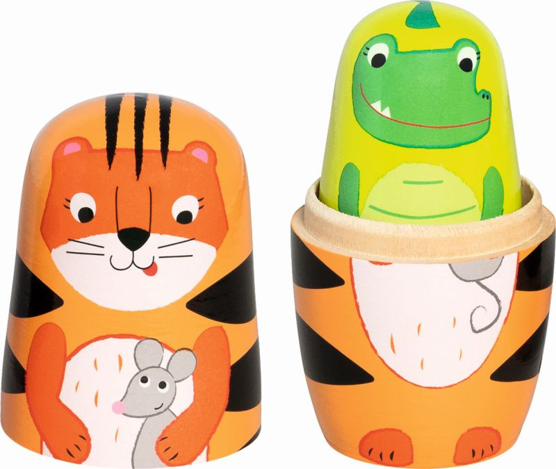 Dzięki klasycznej formie układania jedno w drugim, maluchy rozwijają koordynację ręka-oko, uczą się logicznego myślenia oraz proporcji wielkości. Figurki wykonane są z wytrzymałego drewna, co sprawia, że zabawka jest solidna i bezpieczna.