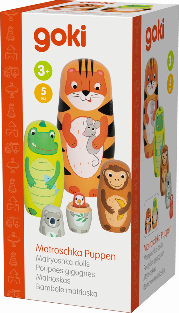Klasyczna zabawa w nowoczesnym wydaniu – kolorowa i rozwijająca. Te pięknie malowane matrioszki Goki to nie tylko urocza dekoracja, ale przede wszystkim zabawka pełna edukacyjnych walorów.
