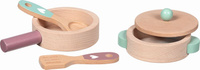 Dzięki temu zestawowi do gotowania dla młodych kucharzy dziecięca kuchnia zyskuje gustowne, podstawowe wyposażenie. Zestaw garnków dla dzieci z drewna Kitchen love Goki łączy naturalny urok drewna z delikatnymi, pastelowymi kolorami. Zawiera garnek z pokrywką, patelnię oraz 2 łyżki, które idealnie pasują do małych rączek. Drewniane akcesoria do kuchni dla dzieci zostały ozdobione subtelnymi serduszkami, co dodaje im wyjątkowego charakteru. Ten komplet to doskonały wybór do zabawy w domu, przedszkolu czy sali zabaw. Jest piękny, trwały i inspirujący do kreatywnej zabawy.