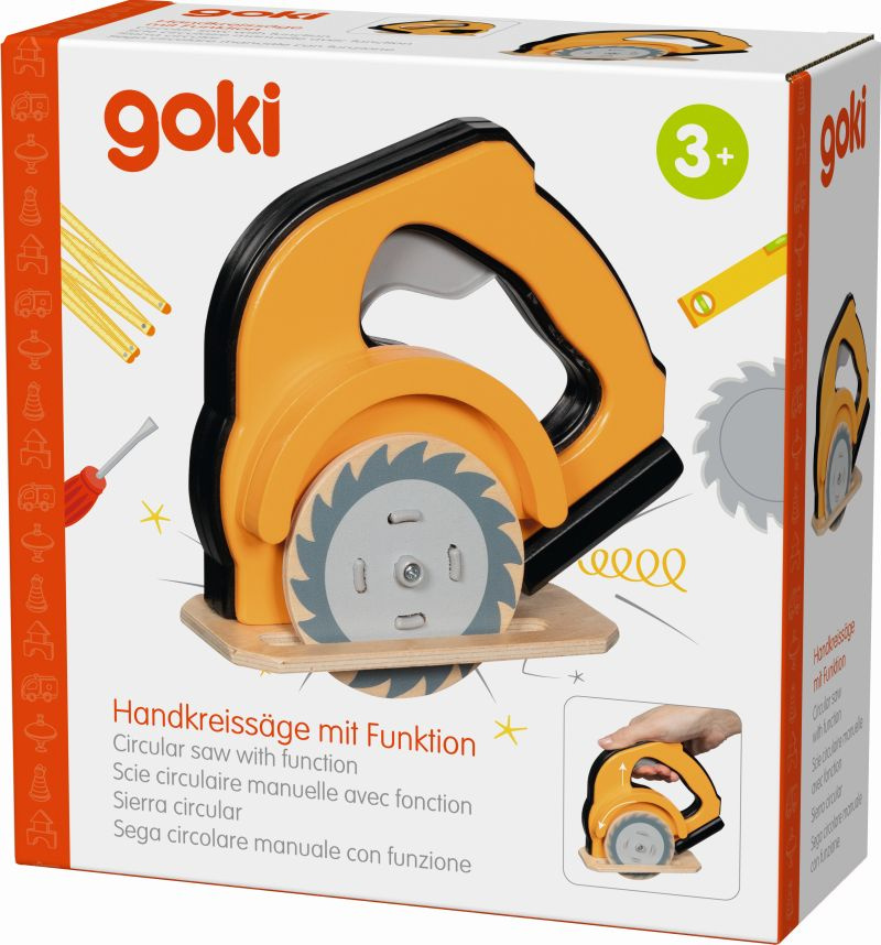 Kiedy w domu rośnie mały konstruktor, warto podsunąć mu narzędzie, które pobudzi jego wyobraźnię. Piła tarczowa do warsztatu Goki z obrotowym brzeszczotem pozwoli dziecku wczuć się w rolę stolarza i tworzyć własne projekty. Naciskając szary uchwyt, maluch uruchamia tarczę, ćwicząc jednocześnie zręczność i precyzję. Wykonana z drewna zabawka jest trwała i bezpieczna, a jej realistyczny wygląd zachęca do twórczej zabawy w domu, przedszkolu lub sali zabaw.