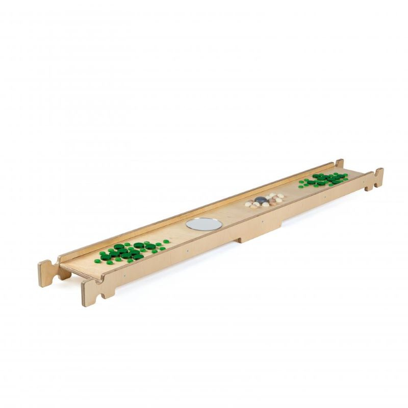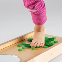 Ścieżka sensoryczna symuluje przejście po kamieniach, kępkach trawy oraz gładkich jak lustro powierzchni. Ścieżka ma 190 cm długości i może wytrzymać ciężar do 100 kilogramów. Gdy jest nieużywana można ją zawiesić na dedykowanym uchwycie ściennym, aby nie zajmowała za dużo wolnego miejsca.