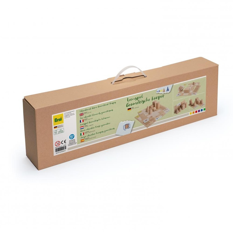 Gra edukacyjna zawiera 6 podstawowych brył geometrycznych. Dzięki niej dzieci uczą się podstawowych zasad geometrii. Poznają znaczenie kształtów, wielkości, brył i powierzchni, a także symetrię i harmonię.