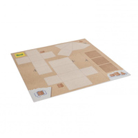 - Zawartość: 6 figur geometrycznych (sześcian, prostopadłościan, koło, piramida, stożek, walec), 2 maty do układania (40x40 cm)