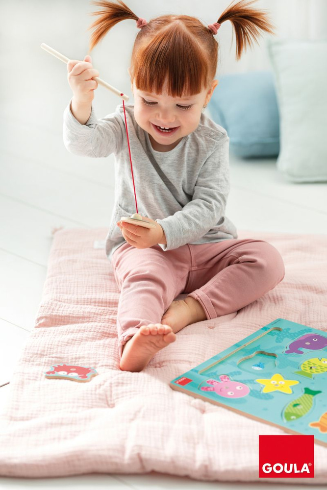 Podwodna wyprawa może zacząć się już w dziecięcym pokoju. Drewniana układanka magnetyczna Mały wędkarz Goula to zestaw, w którym rybki, kraby i meduzy trzeba wyłowić przy pomocy magnetycznej wędki, a następnie dopasować do odpowiedniego miejsca. Zabawka doskonale wspiera rozwój zdolności manualnych, uczy cierpliwości i skupienia, a do tego zachwyca piękną, kolorową grafiką. To świetny pomysł na prezent dla dwulatka i starszych dzieci, który połączy naukę z radością zabawy.