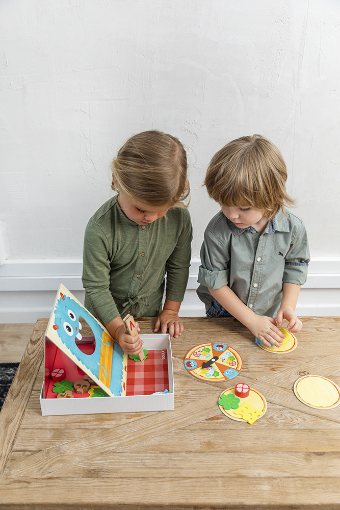 Z pozoru to tylko przygotowywanie pizzy, ale w tej grze liczy się refleks i dobra koordynacja. W zestawie Głodny potwór Goula czeka sympatyczny stworek, który zjada wszystko, co znajdzie na stole. Uczestnicy gry kręcą ruletką, zbierają składniki za pomocą szczypiec i ścigają się, kto pierwszy przygotuje pełną pizzę.
