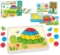 Zestaw zawiera 6 pięknie ilustrowanych plansz i kolorowe "guziki", które dziecko dopasowuje do odpowiednich miejsc. Proste zasady i solidne wykonanie sprawiają, że to idealna gra dla dzieci, a także pomysłowy prezent dla 3 latka, który pomoże mu ćwiczyć koncentrację i cierpliwość podczas kreatywnej zabawy.