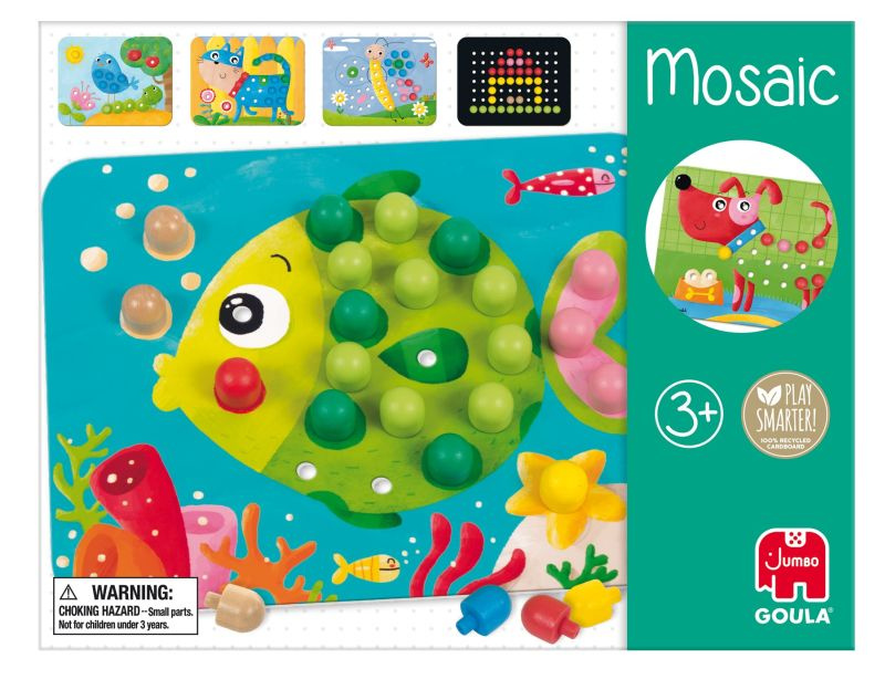 Zabawka, która wciąga bez reszty i rozwija dziecięcą kreatywność w najlepszy możliwy sposób. Mozaika Goula to zestaw pełen kolorów i pomysłów. 6 ilustracji z uroczymi zwierzątkami oraz zestaw 60 drewnianych kołeczków, które można dowolnie układać.