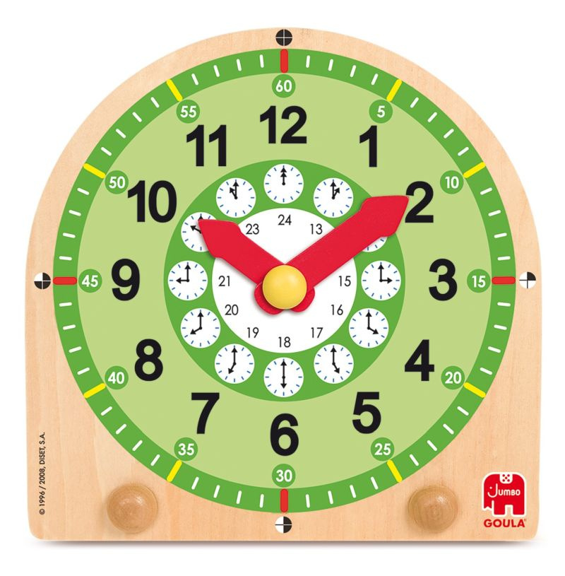 Dzięki ruchomym wskazówkom, czytelnej tarczy i oznaczeniom minut dziecko z łatwością opanuje naukę godzin. Drewniany zegar do nauki dla dzieci Goula uczy przez zabawę, rozwija spostrzegawczość, precyzję ruchów oraz logiczne myślenie.