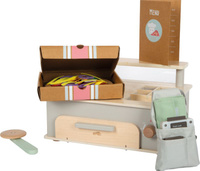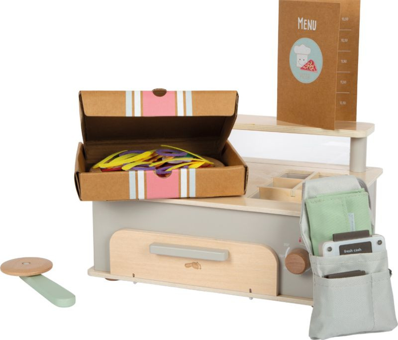 Drewniana pizzeria Small Foot to pełna uroku zabawka dla dzieci, która rozwija wyobraźnię, uczy współpracy i zachęca do twórczej zabawy w gotowanie i prowadzenie własnej restauracji.