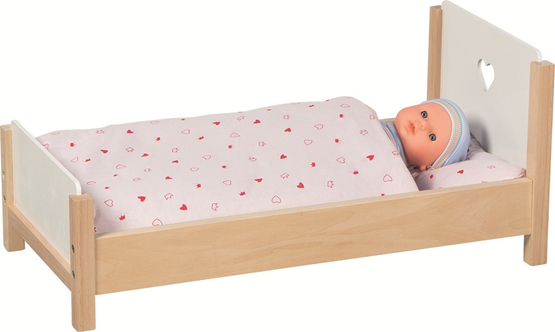 Drewniane łóżko dla lalki "Serduszko" Goki przyniesie wiele atrakcji podczas zabawy małej dziewczynce z jej ulubionymi lalkami. Łóżeczko w zestawie nie zawiera pościeli i lalki.