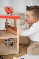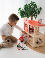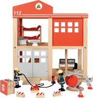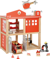 Ta duża, drewniana remiza to zestaw stworzony z myślą o dzieciach, które lubią zabawy ratunkowe i scenki pełne akcji. Duża drewniana remiza strażacka z akcesoriami i dźwiękiem Small Foot ma 2 piętra, rurę strażacką i lądowisko współdziałające z helikopterem wyposażonym w działającą wyciągarkę. Wóz strażacki mieści się w garażu z dużymi drzwiami, a otwarta konstrukcja budynku ułatwia dostęp do wszystkich pomieszczeń.
