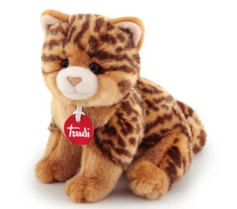 Ten cętkowany kotek Trudi należy do najbardziej lubiany pluszak dla dzieci. Ma siedzącą pozycję i subtelny wyraz pyszczka który dodaje mu słodyczy. Tylne łapki zostały ułożone w sposób typowy dla młodych kotów co nadaje mu naturalny wygląd. Maskotka została wykonana z dużą starannością, z materiałów które są miękkie i przyjemne w dotyku. Maskotka może być prana w pralce w temperaturze 30 stopni lub ręcznie przy użyciu gąbki i delikatnego mydła.