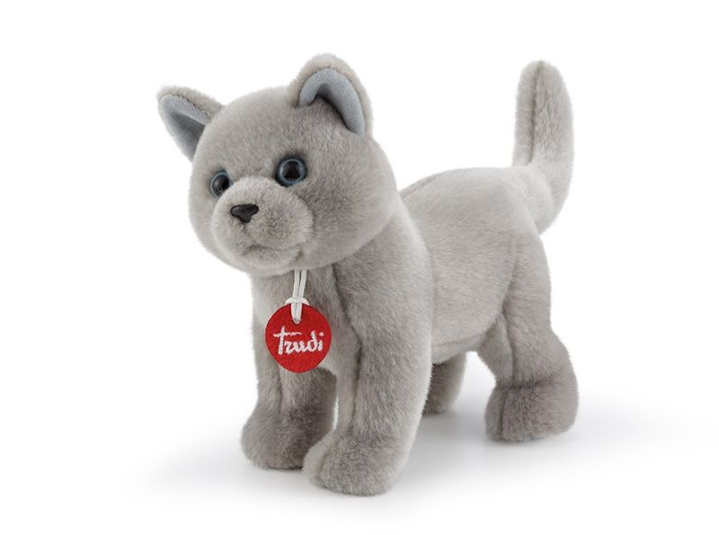 Maskotka dla dzieci szara kotka Trudi została wykonana z materiałów wysokiej jakości i uszyta ręcznie, z dbałością o każdy detal. Delikatna w dotyku i pełna autentycznych niuansów przypomina prawdziwe zwierzątko, co pomaga dzieciom rozwijać wyobraźnię oraz uczy budowania relacji. Do produkcji wykorzystano wyłącznie surowce nietoksyczne i ognioodporne, co zwiększa bezpieczeństwo najmłodszych. Wypełnienie umieszczono w zabezpieczonym, tkanym woreczku, który chroni przed wysypywaniem. Maskotkę można prać w pralce w 30 stopniach lub czyścić ręcznie gąbką i łagodnym mydłem .