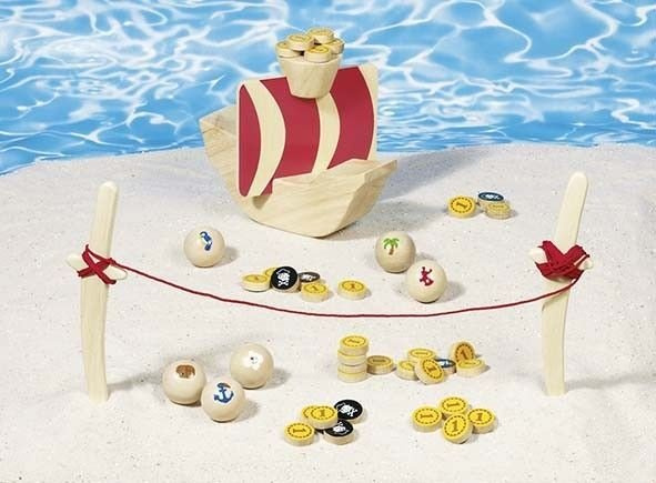 Komu uda się odzyskać skarb? Każdy gracz próbuje trafić w statek dużą drewnianą piłką, tak, aby dukaty spadły złotą stroną do góry na powierzchnię. Jeżeli jednak dukaty spadną symbolem piratów zmierz się z nimi, mogą pozostać w posiadaniu kapitana Koog. Dwóch do sześciu graczy może wziąć udział w polowaniu na wielki, złoty skarb.