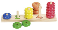 Naucz się liczyć z drewnianymi pierścieniami, oddzielaj i porządkuj kolory i kształty.