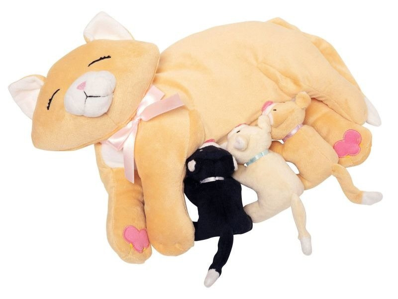 Pluszowa kocia mama ze swoimi trzema szczeniakami z magnesami, dzięki którym połączą się ze swoją mamą. Wykonana z delikatnego pluszu, ręcznie szyte detale.